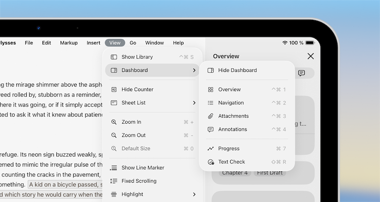 Ulysses Left to Right: Library, Sheet List, Editor
